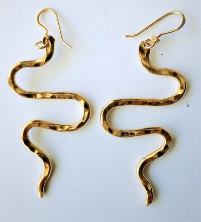 orecchini a serpentello in rame battuto naturale,o placcato oro o argento